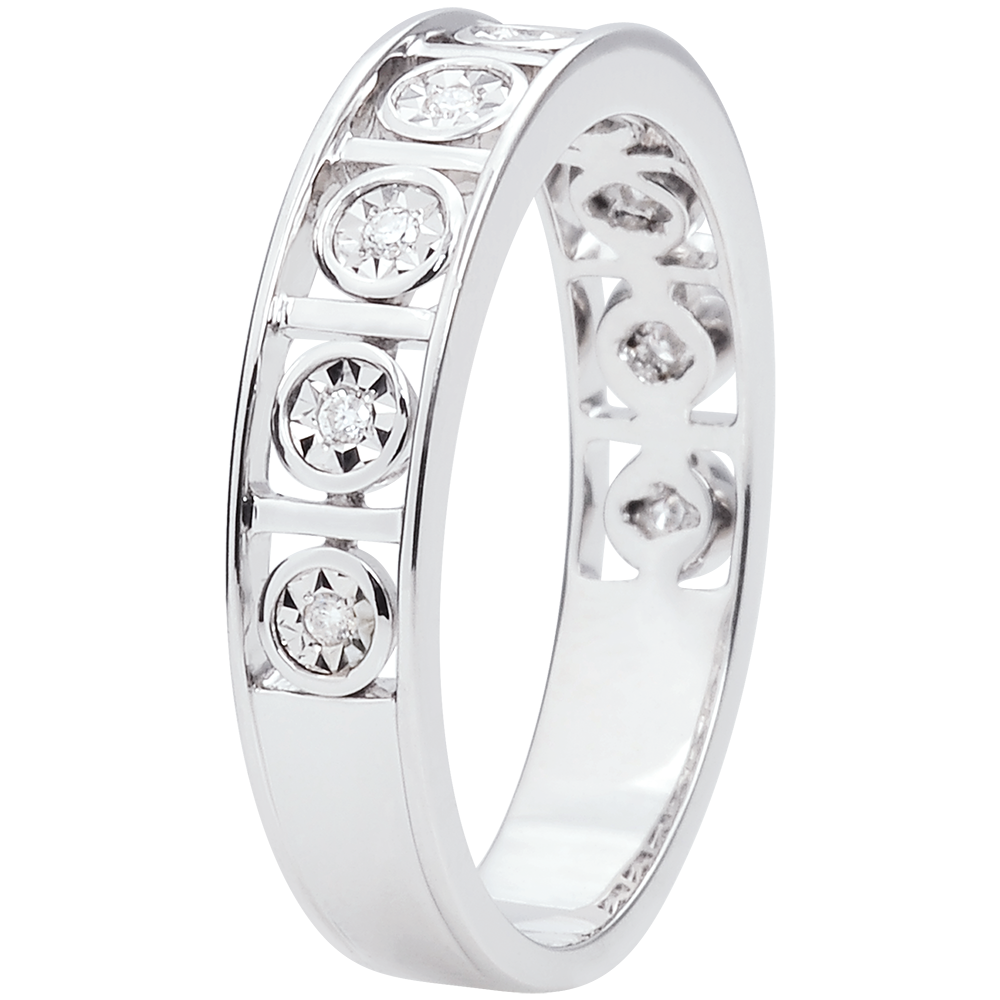 Verighetă Destin - Secret de Iubire - 9 Diamante - aur alb de 9K