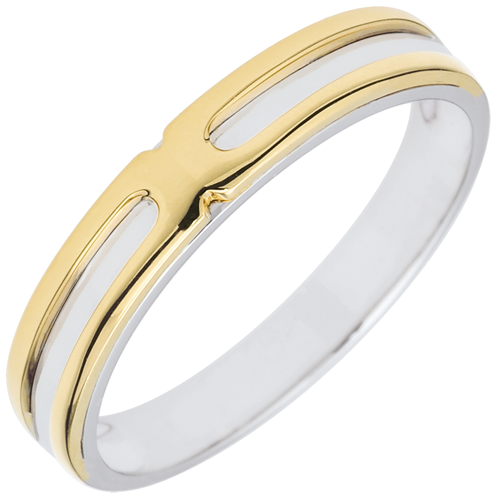 Verighetă Solstiţiu - două nuanţe de aur - aur alb şi aur galben de 9K