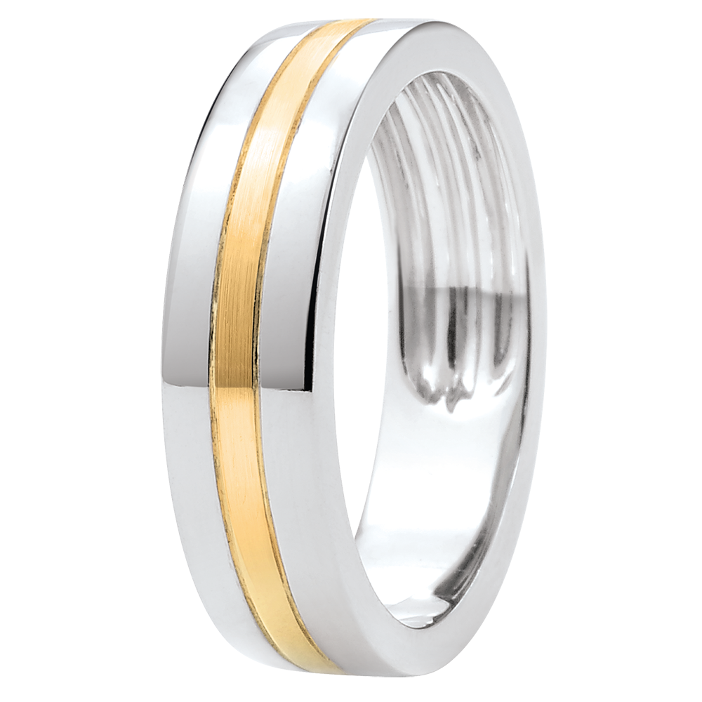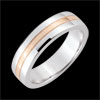 Această verighetă din aur alb este traversată de o bandă de aur roz pentru un efect strălucitor şi modern.