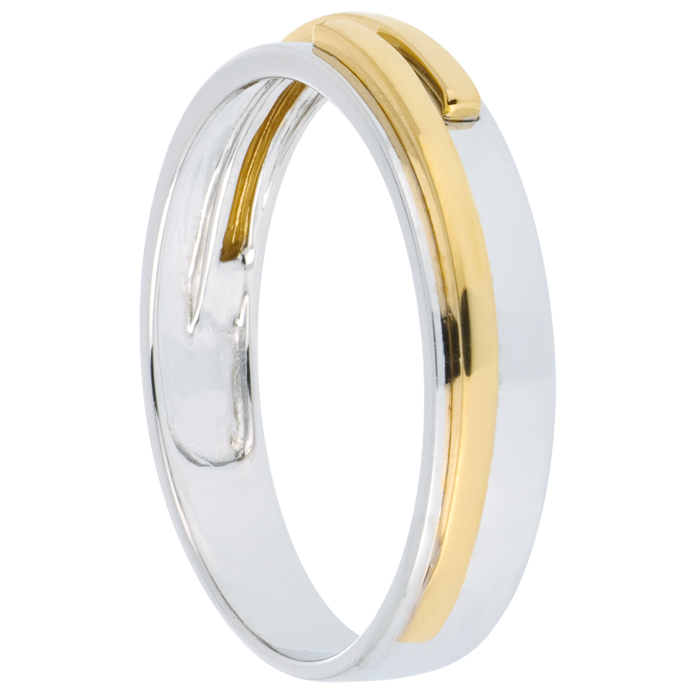 O bandă de aur alb încercuită de o panglică de aur galben. O verighetă ideală pentru a sărbători căsătoria sau angajamentul dumneavoastră.